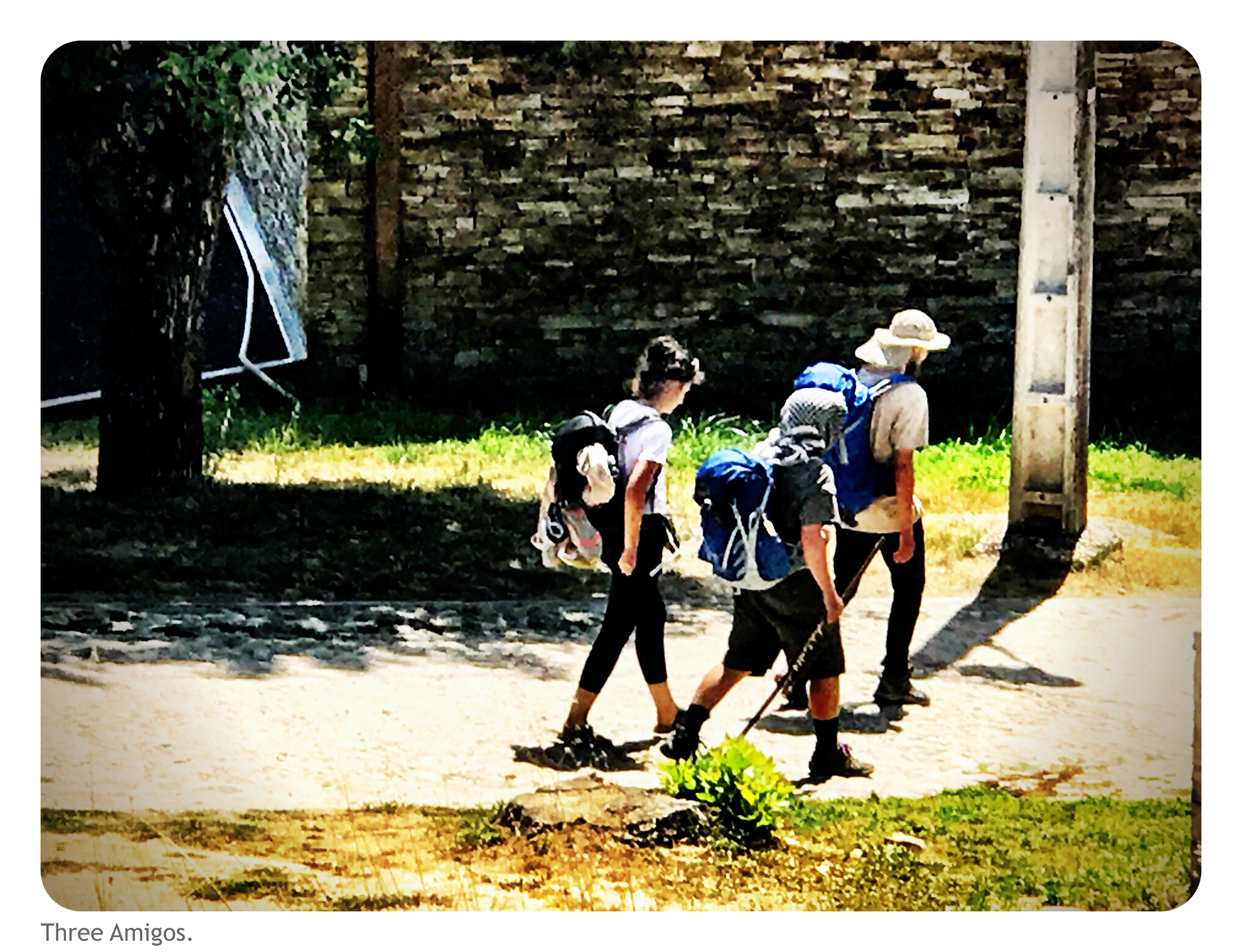 My return to sanity and saving grace was John, Luke and Esther, AKA, Rasputin, Yasser/Barney and Angel. I saw them ascending the slope as my annoyance was formenting, and managed to attract their attention. A quick beer turned into … a longer beer. A blessing and a curse, as Yasser told me: nice to chat, longer to walk. They plan to hit Santiago a day before me, on Wednesday, and then bus it over to Finisterre the next day for a quick mosey and return. The tentative plan is a collective dinner on Thursday as they all leave at 0500 on Friday. I’ve got a room booked that night and they don’t, so may be a squeeze. I decamp to Finisterre on Friday, all being well.